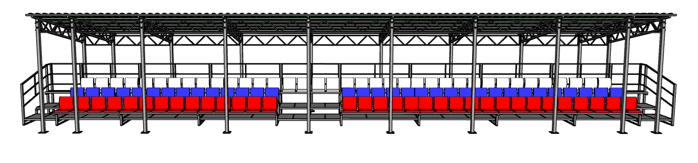 * Цена указана за изделие. Доставка и монтаж рассчитываются отдельно. Стационарная трибуна, имеет навес для защиты от осадков. 3 ряда сидений. Цвет сидений на выбор заказчика.