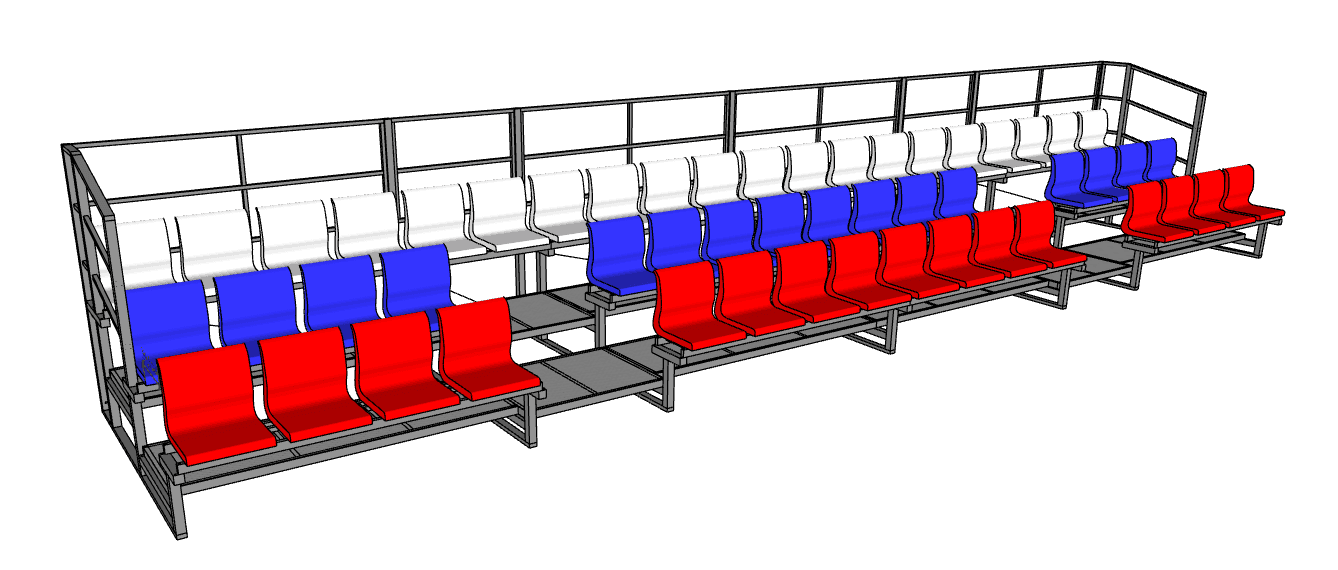 * Цена указана за изделие. Доставка и монтаж рассчитываются отдельно. Стационарная трибуна. 3 ряда сидений. Цвет сидений на выбор заказчика.
